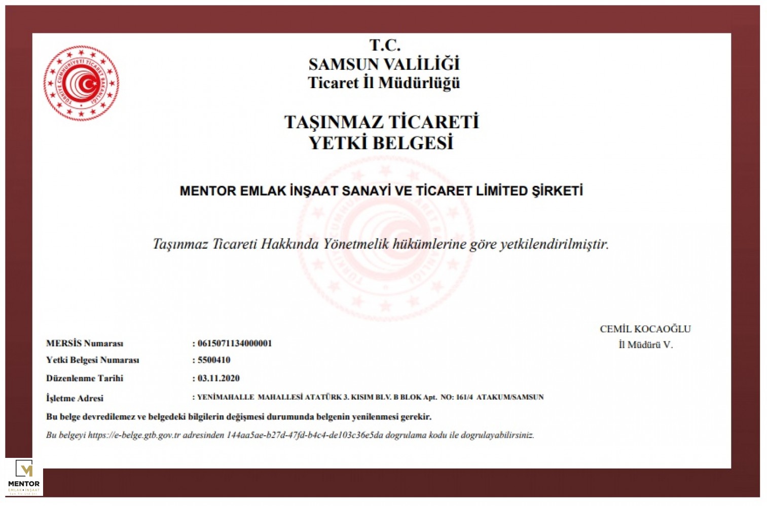 GAYRİMENKUL ŞİRKET ÜZERİNE OLUP, FATURA KESİLECEKTİR (STOPAJ VERGİSİ YOK)
