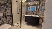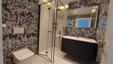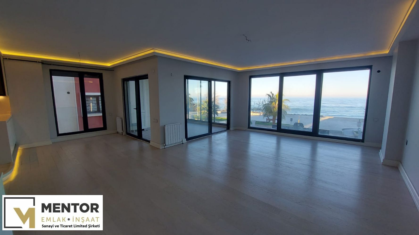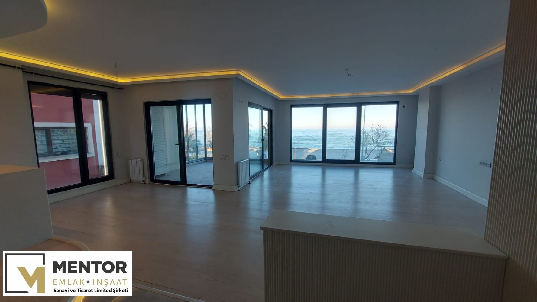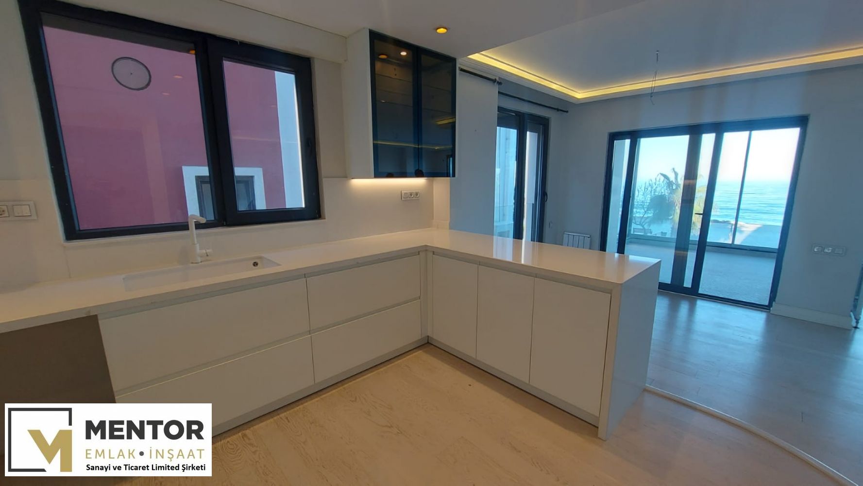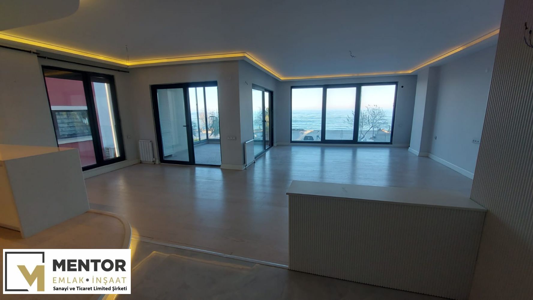 DENİZE CEPHE SALON & MUTFAK 60 m2 (Ada mutfak bölümü 15 m2) + 1. ODA 11 m2 + EBEVEYN YATAK ODASI (Ebeveyn banyolu) 22 m2 + DENİZE CEPHE CAM BALKON SİSTEMİ İLE KAPALI ve KALORİFERLİ ÖN BALKON 11 m2