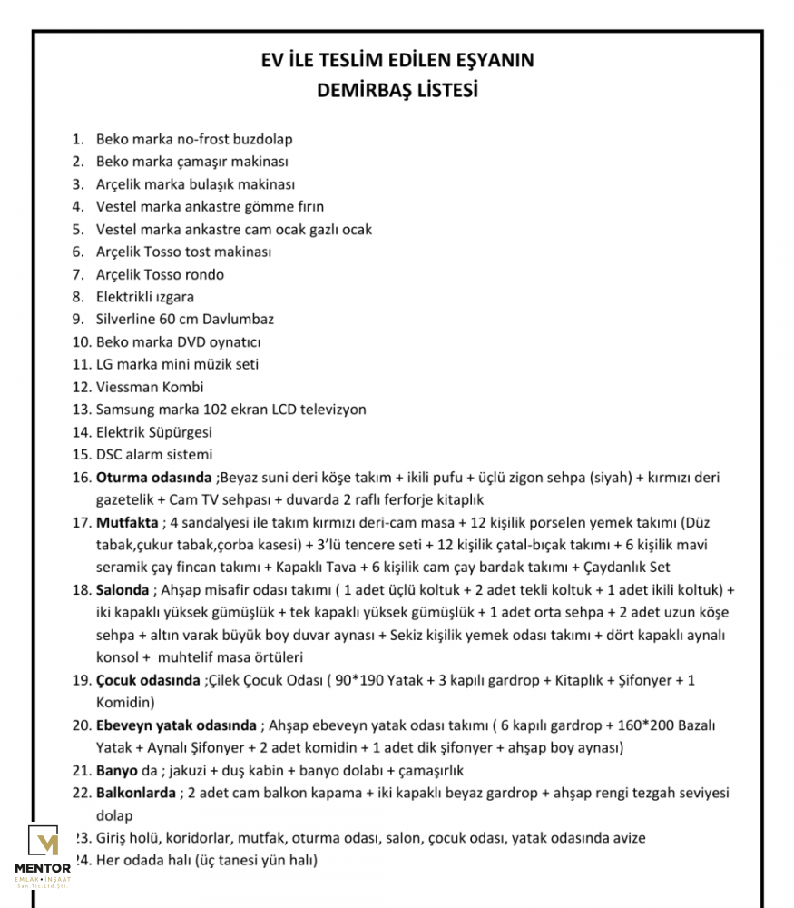 DAİRE FULL EŞYALI OLUP, EŞYA LİSTESİ EKLİ FOTOĞRAFLARDA VARDIR.